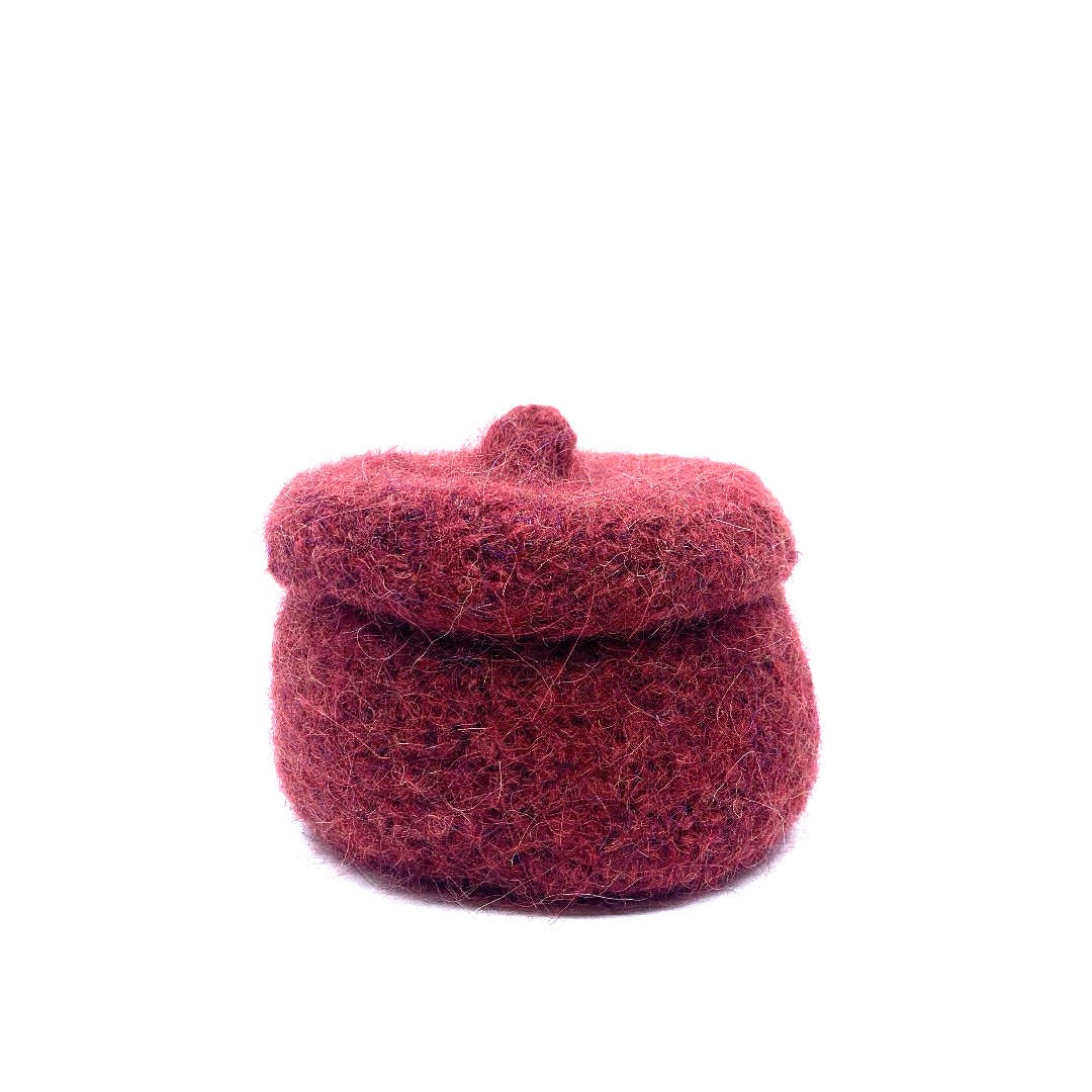 Potje met deksel, geschikt als bv juwelendoosje, opberger voor kleine bureauspullen... Totale hoogte 5 cm, diameter 8 cm. Te koop bij Tiftik Avelgem of hier online.