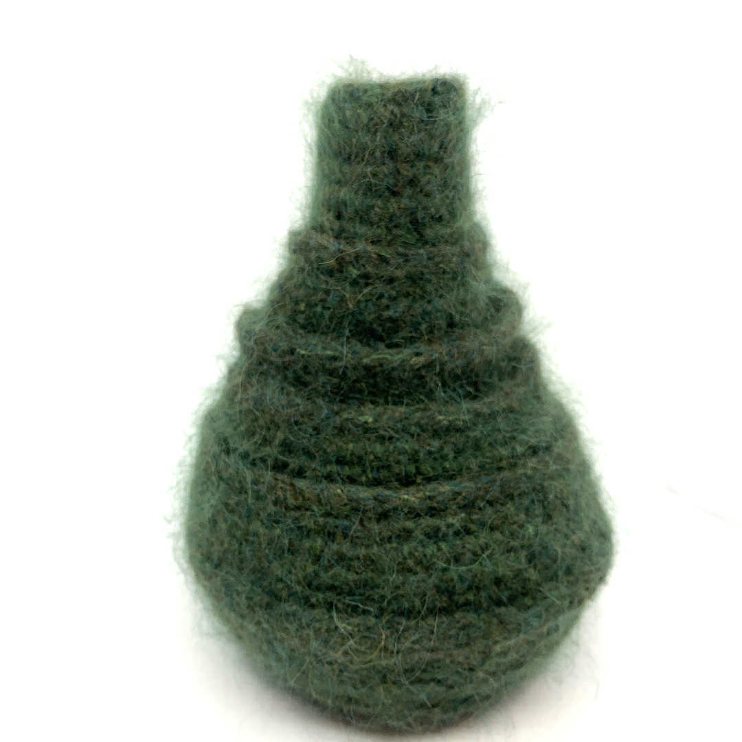 Vaas in vervilte wol met binnenin glazen proefbuis, kan gebruikt worden voor echte bloemen. Hoogte 18,5cm. Te koop bij Tiftik Avelgem of hier online te bestellen.